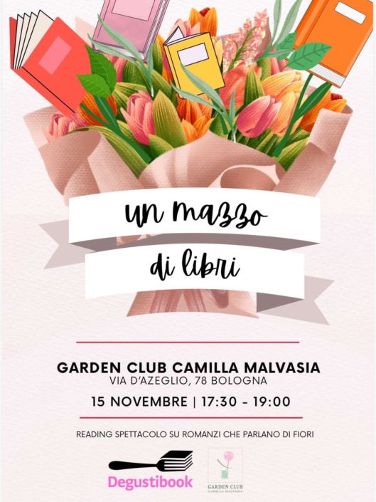 Reading - spettacolo su romanzi che parlano di fiori, a cura delle socie e soci dell’associazione culturale DegustiBOOK di Reggio Emilia. Sabato 15 Novembre ore 17:30 in sede