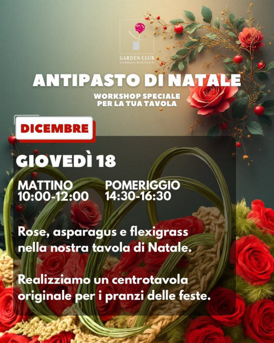 Gli eventi natalizi del Garden Club Bologna! 13 e 14 dicembre: handicraft market - 15 dicembre: workshop bambini - 18 dicembre: workshop adulti
