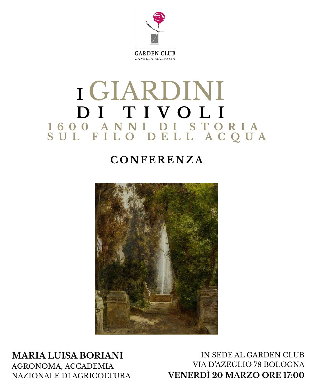 Per tutte le informazioni: info@gardenclubbologna.it