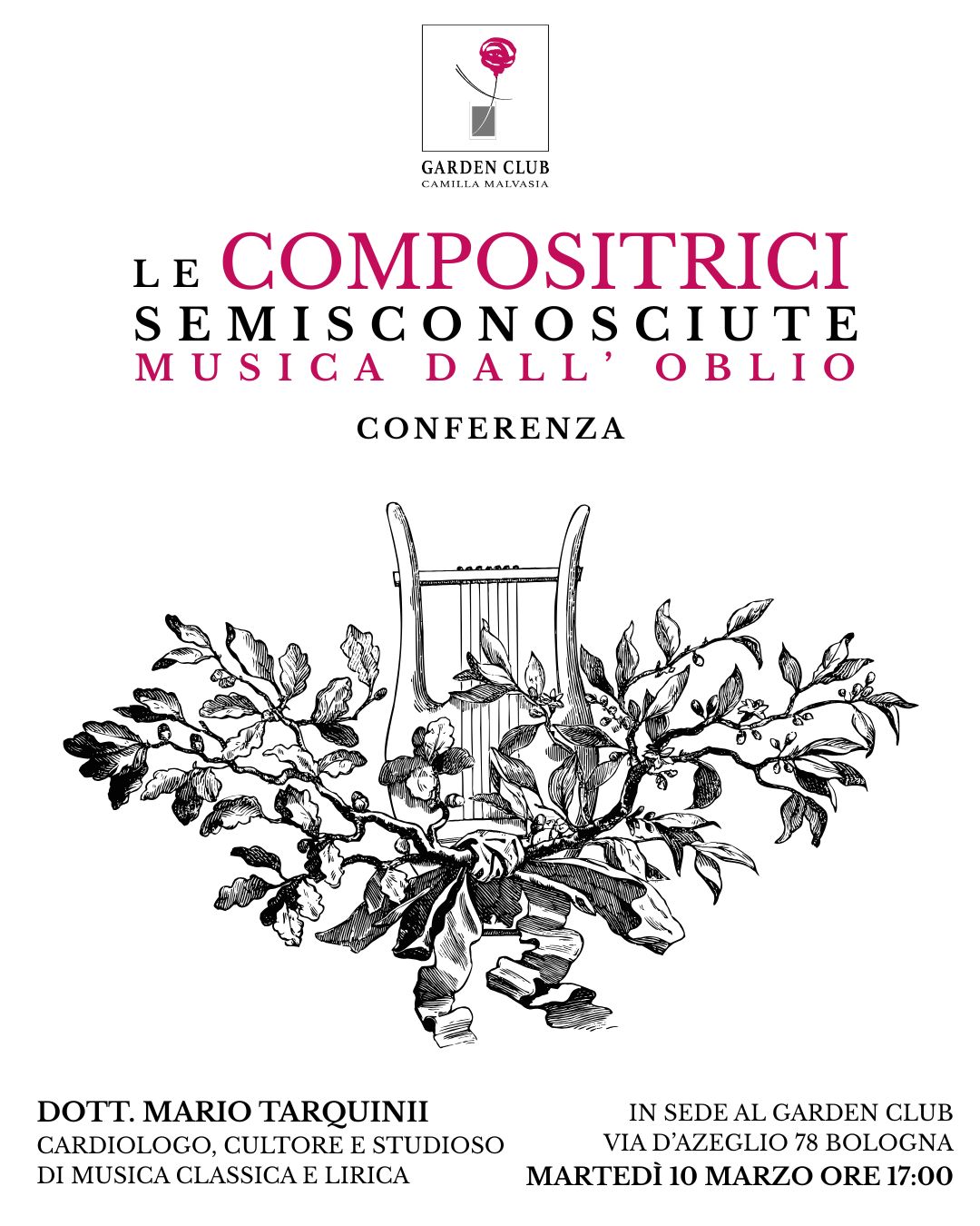 Conferenza del Dott. Mario Tarquinii, cardiologo, cultore e studioso di musica classica e lirica. L’incontro porrà l’accento sulle donne compositrici della musica classica tenute spesso ai margini del mondo musicale. Ingresso libero per Socie e Soci, posti limitati