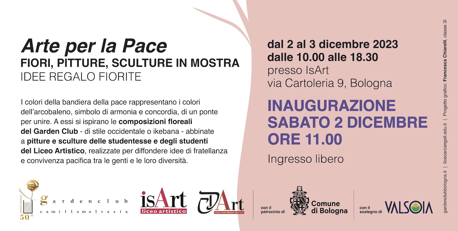 Gli studenti dei corsi di pittura, scultura e grafica digitale sono stati coinvolti attraverso un concorso bandito dal Garden Club nell’ambito dei percorsi per le competenze trasversali e l’orientamento (PTCO) previsti per i trienni superiori. Guidati dai loro insegnanti, hanno aderito in numero rilevante, ben 203, un dato che indica l’attenzione dei giovani e del Liceo Arcangeli per i temi sociali. Una partecipazione che ha prodotto opere di straordinaria pregnanza artistica e contenutistica e che ha reso entusiasmante ma non facile la selezione delle 17 presentate in mostra: 8 per la pittura, 8 per le arti plastiche, 1 per la grafica utilizzata per la comunicazione digitale e cartacea. Per valorizzare tanta creatività, gruppi seriali di opere frutto di collaborazioni in team hanno avuto menzioni speciali e sono state esposte a margine della mostra. In ogni modo tutte le opere sono protagoniste di un video che è stato proiettato in loop nella sala espositiva.